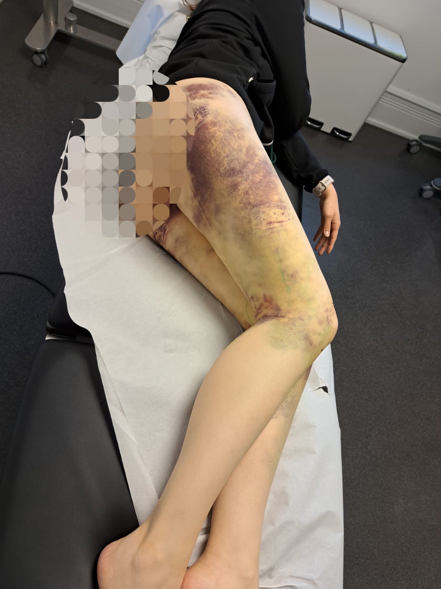 The first lipedema surgery on my legs (circular thigh surgery) took place in September 2023, the second on my arms in February 2024. I canceled the third planned surgery because the pain was no longer bearable. Therefore, I only had partial surgery .